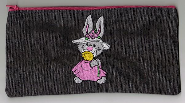 Pen or pencil cases by Cool Creations (Denim) Rabbit with yellow flower
