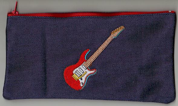 Pen or pencil cases by Cool Creations (Denim) Red guitar