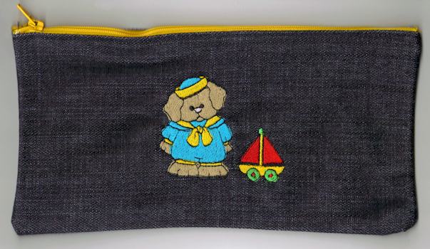 Pen or pencil cases by Cool Creations (Denim) Puppy and boat