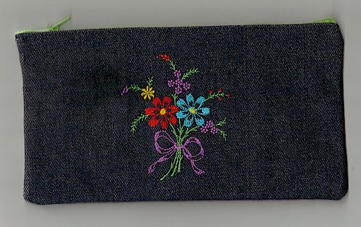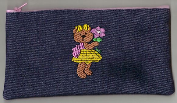 Pen or pencil cases by Cool Creations (Denim) Bear with pink flower