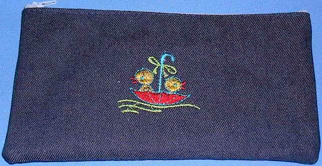 Pen or pencil cases by Cool Creations (Denim) Bird under umbrella
