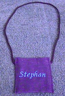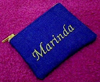 geborduurde ontwerp en naam gee die beursie 'n tikkie persoonlike kleur.